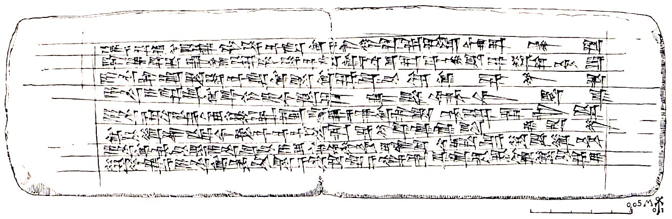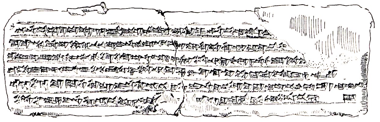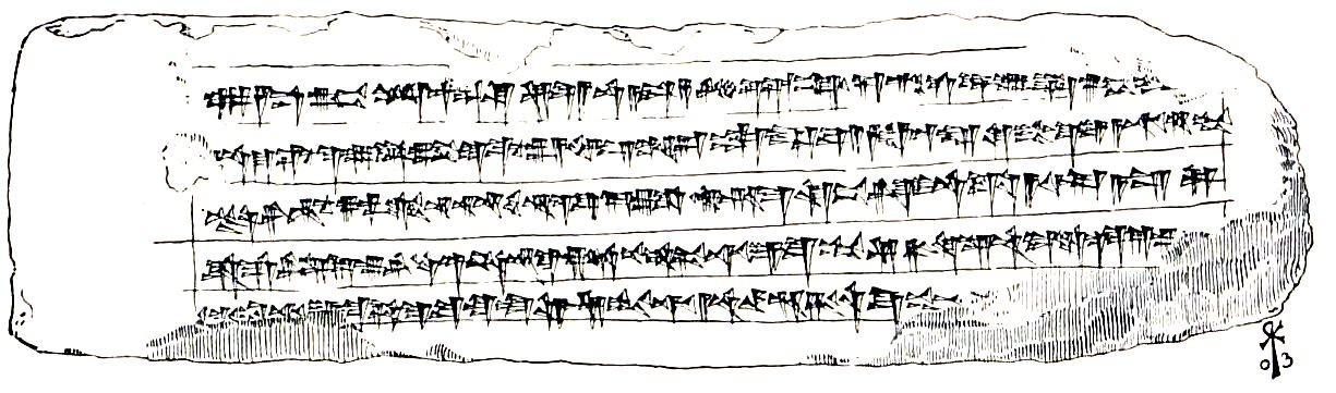 First, I must remark on the Babylonian measures used, that they are principally the cubit, equal to about one foot eight inches English, and the gar or sa, equal to 12 cubits, or 20 feet English; but there is another series of numbers used in measuring, consisting apparently of numbers of barleycorns arranged in sixties, thus the first number is a length of 11. 33. 20, which consists of 11 × 3600 ÷ 33 × 60 ÷ 20 barleycorns, or 1155 feet 7 inches. The barleycorn was the standard unit of measure among the Babylonians, and for this reason was used sometimes in measures of length without the other terms.