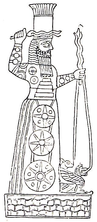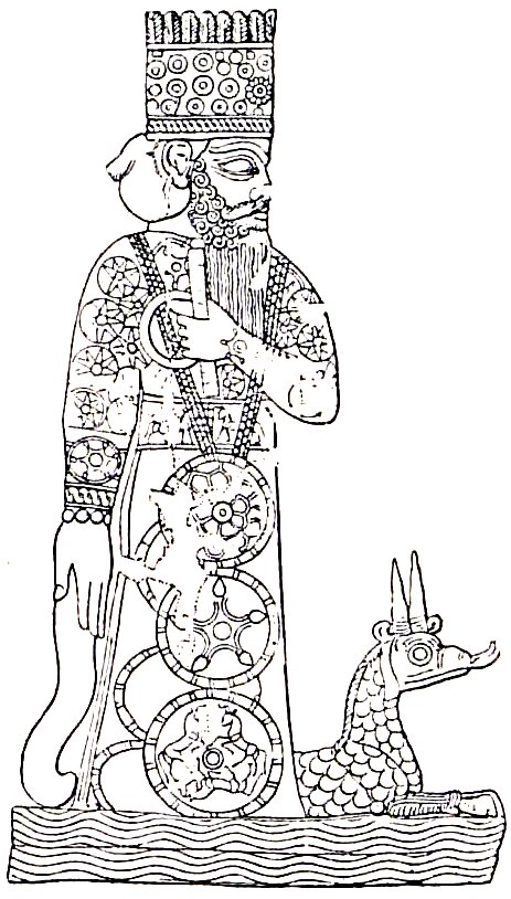 On the eastern side stood a sanctuary or temple 70 or 80 cubits long and 40 cubits broad (117 or 133 feet by 67), with 16 shrines, the principal being the shrines devoted to the god Nebo and Urmit, or Tasmit his Wife. Nebo was considered the eldest son of Bel, the great deity of the temple.