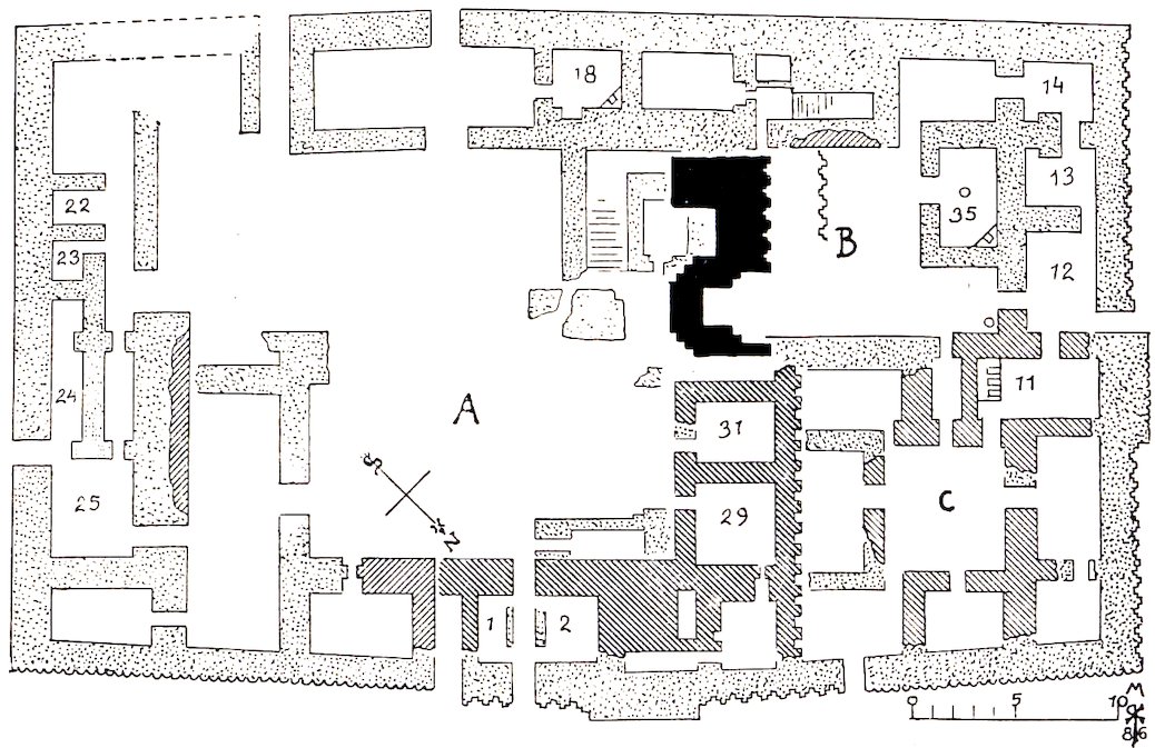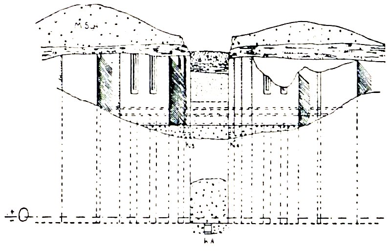 1903. The north-east corner of the Southern Citadel with the vaulted building was explored, December 1902–January 1904.
