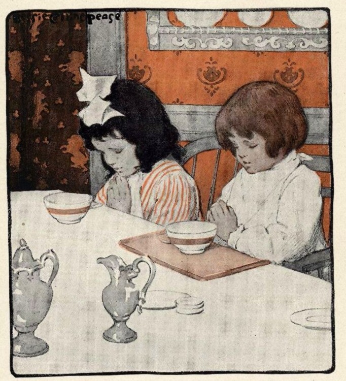 With little children saying grace