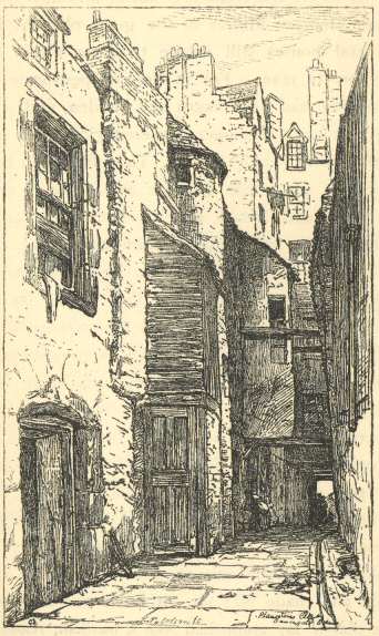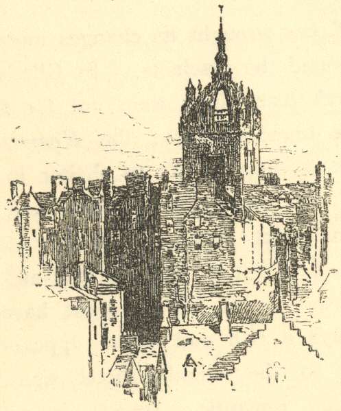 It is almost the correct literary sentiment to deplore the revolutionary improvements of Mr. Chambers and his following. It is easy to be a conservator of the discomforts of others; indeed, it is only our good qualities we find it irksome to conserve. Assuredly, in driving streets through the black labyrinth, a few curious old corners have been swept away, and some associations turned out of house and home. But what slices of sunlight, what breaths of clean air, have been let in! And what a picturesque world remains untouched! You go under dark arches, and down dark stairs and alleys. The way is so narrow that you can lay a hand on either wall; so steep that, in greasy winter weather, the pavement is almost as treacherous as ice. Washing dangles above washing from the windows; the houses bulge outwards upon flimsy brackets; you see a bit of sculpture in a dark corner; at the top of all, a gable and a few crowsteps are printed on the sky. Here, you come into a court where the children are at play and the grown people sit upon their doorsteps, and perhaps a church spire shows itself above the roofs. Here, in the narrowest of the entry, you find a great old mansion still erect, with some insignia of its former state—some scutcheon, some holy or courageous motto, on the lintel. The local antiquary points out where famous and well-born people had their lodging; and as you look up, out pops the head of a slatternly woman from the countess’s window. The Bedouins camp within Pharaoh’s palace walls, and the old war-ship is given over to the rats. We are already a far way from the days when powdered heads were plentiful in these alleys, with jolly, port-wine faces underneath. Even in the chief thoroughfares Irish washings flutter at the windows, and the pavements are encumbered with loiterers.