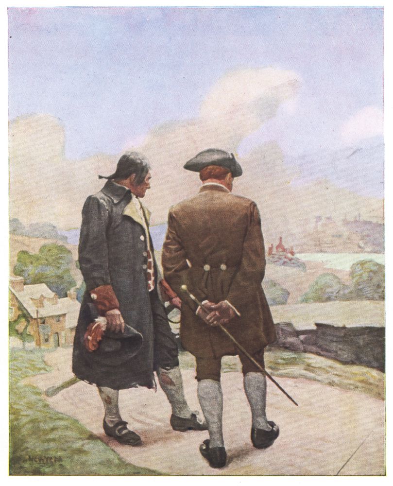 We came the by-way over the hill of Corstorphine; and when we got near to the place called Rest-and-be-Thankful, and looked down on Corstorphine bogs and over to the city and the castle on the hill, we both stopped, for we both knew without a word said that we had come to where our ways parted. Here he repeated to me once again what had been agreed upon between us: the address of the lawyer, the daily hour at which Alan might be found, and the signals that were to be made by any that came seeking him. Then I gave what money I had (a guinea or two of Rankeillor’s) so that he should not starve in the meanwhile; and then we stood a space, and looked over at Edinburgh in silence.{289}