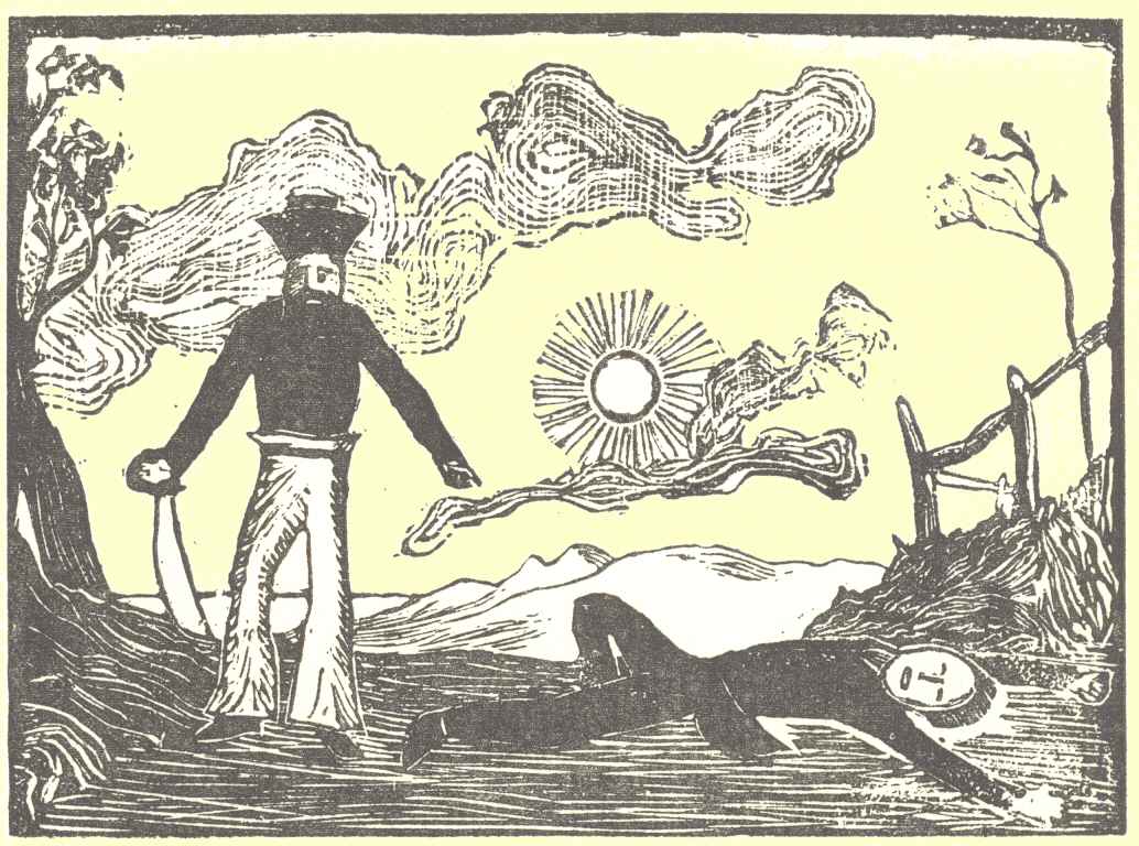 ‘If only we could have illustrations,’ said the publisher longingly. But his ‘cuts’ had all been used in ‘Black Canyon, or Life in the Far West.’ Illustrations had to be p. xiput by as a dream impossible of fulfilment. No, not impossible! Louis, who was a man of infinite resourcefulness (he could paint better theatre-scenes than any one could buy), said that he would try to carve some pictures on squares of fretwood. The word fretwood seems as unknown nowadays as the thing itself; it was an extremely thin piece of board with which one was supposed to make works of art with the help of pasted-on patterns, an aggravating little saw, and the patience of Job. . . . Well, Louis cut out a small square of fretwood, and in a deeply-thoughtful manner applied himself to the task. He had only a pocket-knife; real tools came later; but he was impelled by a will to win that carried all before it. After an afternoon of almost suffocating excitement—for the publisher—he completed the engraving that accompanies the poem: ‘Reader, your soul upraise to see.’ But it had yet to be mounted on a wooden block in order to p. xiiraise it to the exact level of the type. At last this was done. A proof was run off. But the impression was unequal. Oh, the disappointment! Author and publisher gazed at each other in misery. But woman’s wit came to the rescue. Why not build it up with cigarette papers? ‘Bravo, Fanny!’ The author set to work, deftly and skilfully. Then more proofs, more cigarette-papers, more running up and down stairs to the little boy’s room, which in temperature hovered about zero. But what was temperature? The thing was a success. The little boy, entranced beyond measure, printed copy after copy from the sheer pleasure of seeing the wet ink magically reproducing the block.