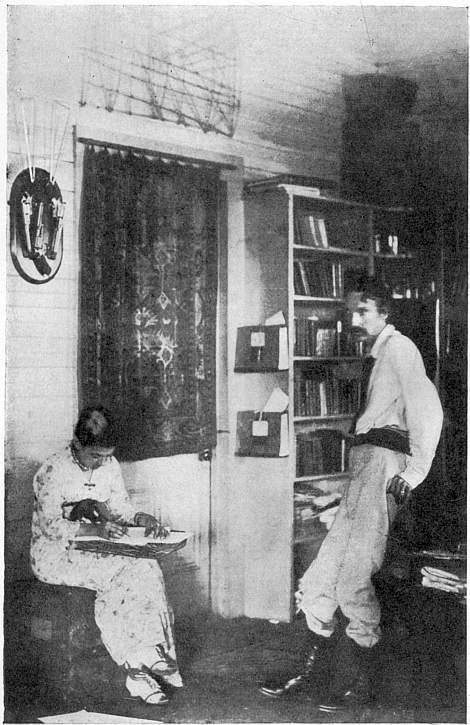 R. L. S. DICTATING TO MRS. STRONG IN HIS STUDY AT VAILIMA