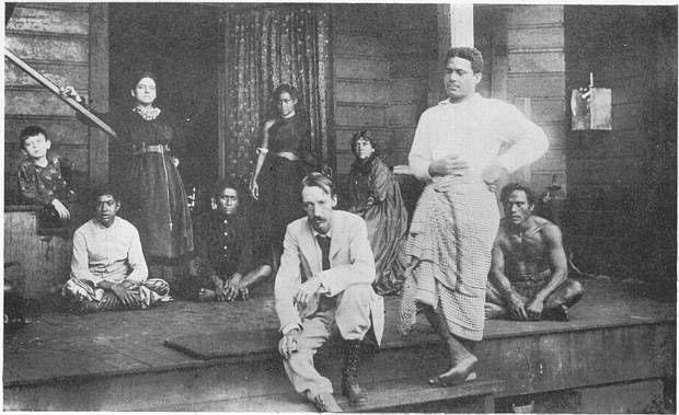In these hot and healthy islands winter is but a name. The rain had not refreshed, nor could the wind invigorate, the dwellers of Tai-o-hae: away at one end, indeed, the commandant was directing some changes in the residency garden beyond Prison Hill; and the gardeners, being all convicts, had no choice but to continue to obey. All other folks slumbered and took their rest: Vaekehu, the native Queen, in her trim house under the rustling palms; the Tahitian commissary, in his beflagged official residence; the merchants, in their deserted stores; and even the club-servant in the club, his head fallen forward on the bottle-counter, under the map of the world and the cards of navy officers. In the whole length of the 6 single shoreside street, with its scattered board houses looking to the sea, its grateful shade of palms and green jungle of puraos, no moving figure could be seen. Only, at the end of the rickety pier, that once (in the prosperous days of the American rebellion) was used to groan under the cotton of John Hart, there might have been spied upon a pile of lumber the famous tattooed white man, the living curiosity of Tai-o-hae.