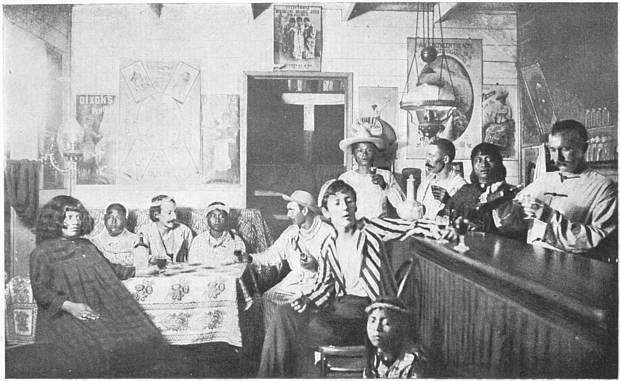 R. L. S. AND OTHERS IN THE SANS-SOUCI SALOON, BUTARITARI, GILBERT ISLANDS