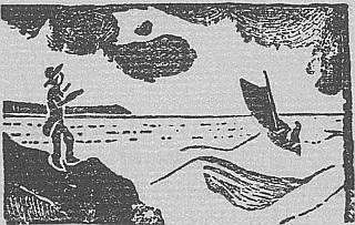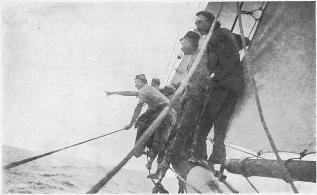 R. L. S. SPEARING FISH IN THE BOW OF THE SCHOONER “EQUATOR”