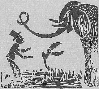 See in the print, how moved by whim Trumpeting Jumbo, great and grim, Adjusts his trunk, like a cravat, To noose that individual’s hat. The sacred Ibis in the distance Joys to observe his bold resistance. |