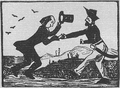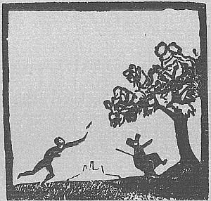 The Abbot for a walk went out A wealthy cleric, very stout, And Robin has that Abbot stuck As the red hunter spears the buck. The djavel or the javelin Has, you observe, gone bravely in, And you may hear that weapon whack Bang through the middle of his back. Hence we may learn that abbots should Never go walking in a wood. |