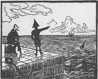 With storms a-weather, rocks a-lee, The dancing skiff puts forth to sea. The lone dissenter in the blast Recoils before the sight aghast. But she, although the heavens be black, Holds on upon the starboard tack. For why? although today she sink Still safe she sails in printers’ ink, And though today the seamen drown, My cut shall hand their memory down. |