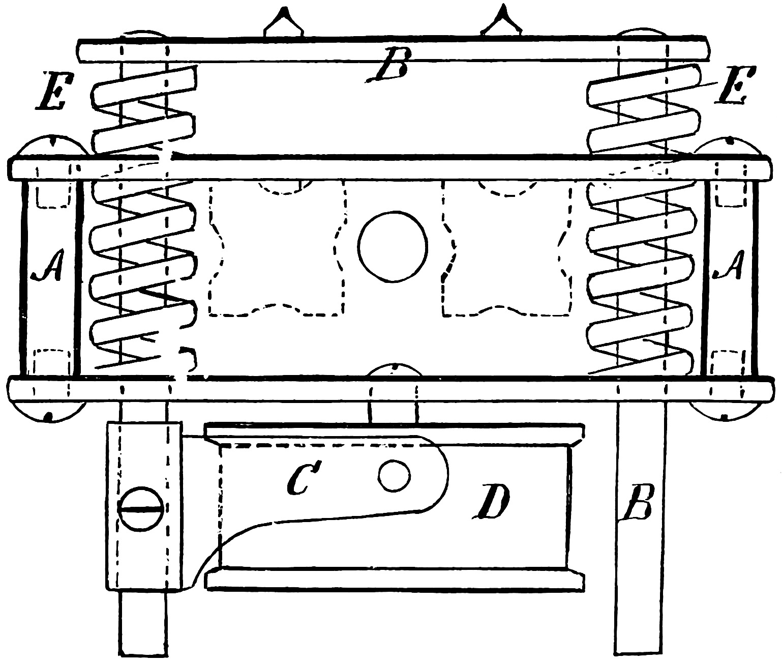 “From the lower ends of the fork C extend, in downwardly or backwardly direction, fixed brackets, C′, to which are applied closed expansible bellows, D, of oblong shape, one at each side of the driving-wheel A.