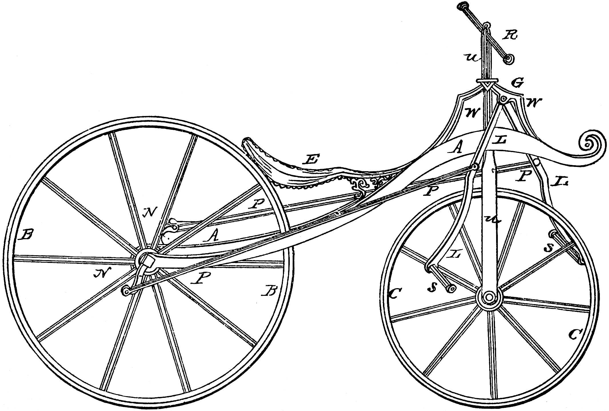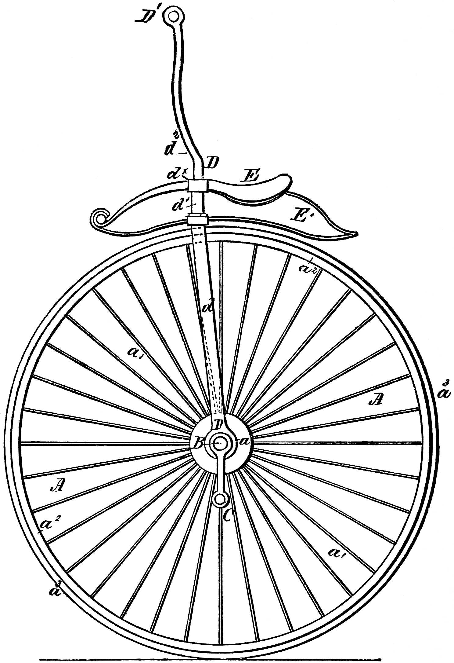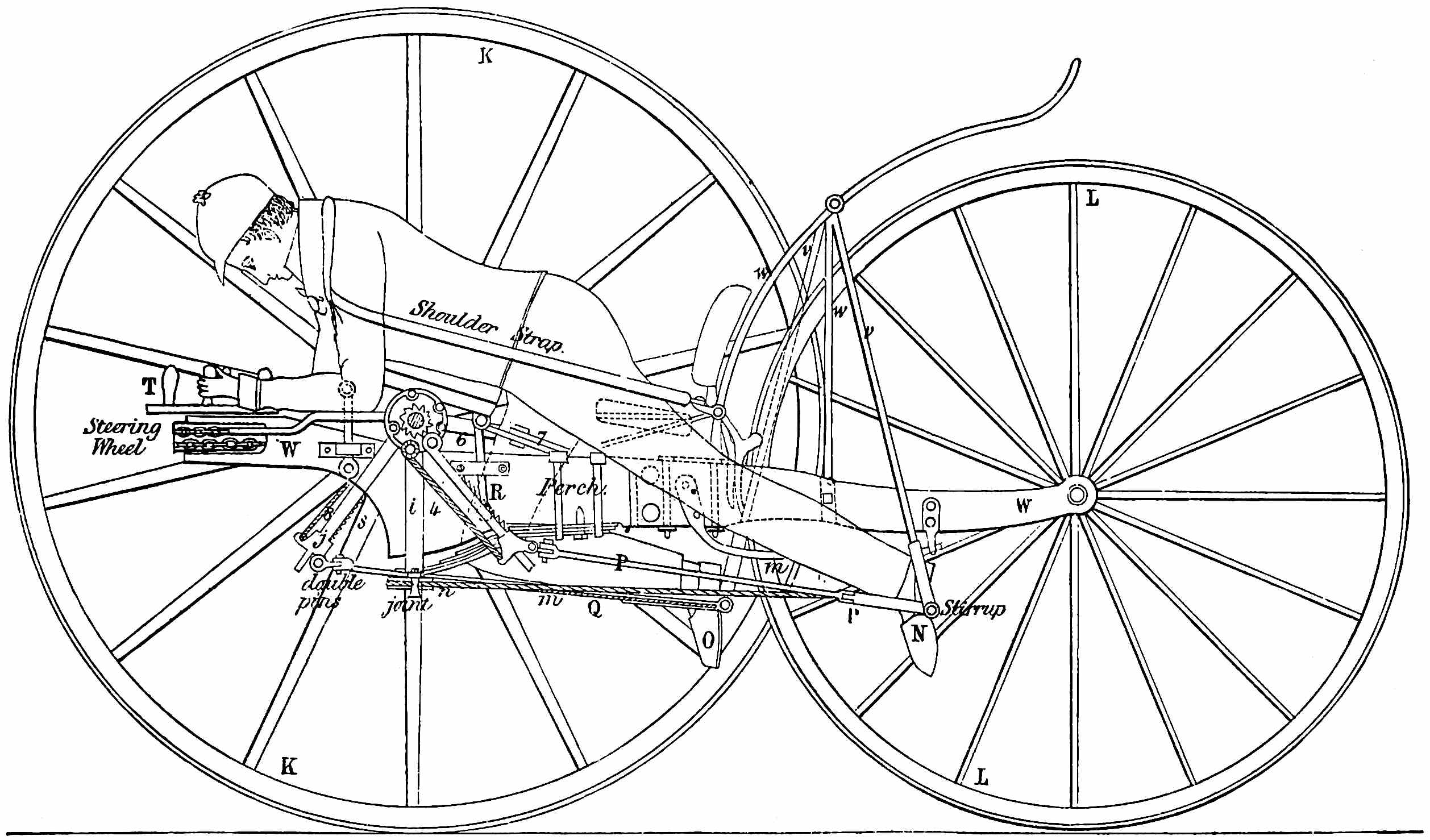 “In bicycles of ordinary construction, when the rider anticipates a fall it is customary to turn the steering-wheel in the direction towards which the rider is inclined to fall. When the steering-wheel of my improved velocipede is deflected, the saddle swings in an opposite direction to that in which the rider tends to fall, which enables the rider to regain his balance with very little movement of the steering-pivot, and also to maintain a direct course with greater ease than with the ordinary machines.”