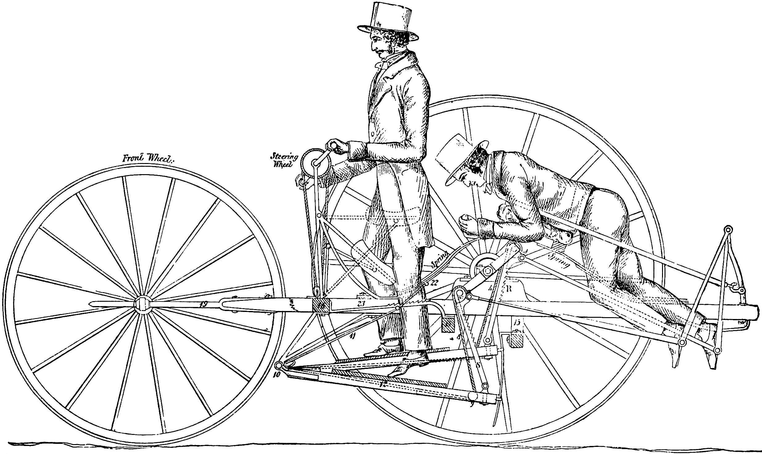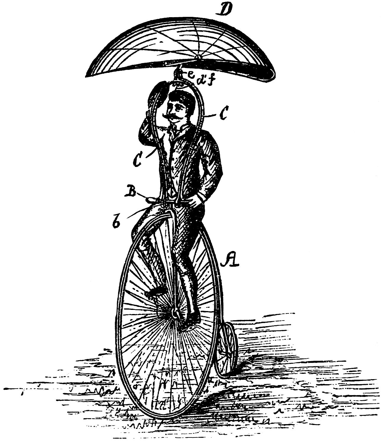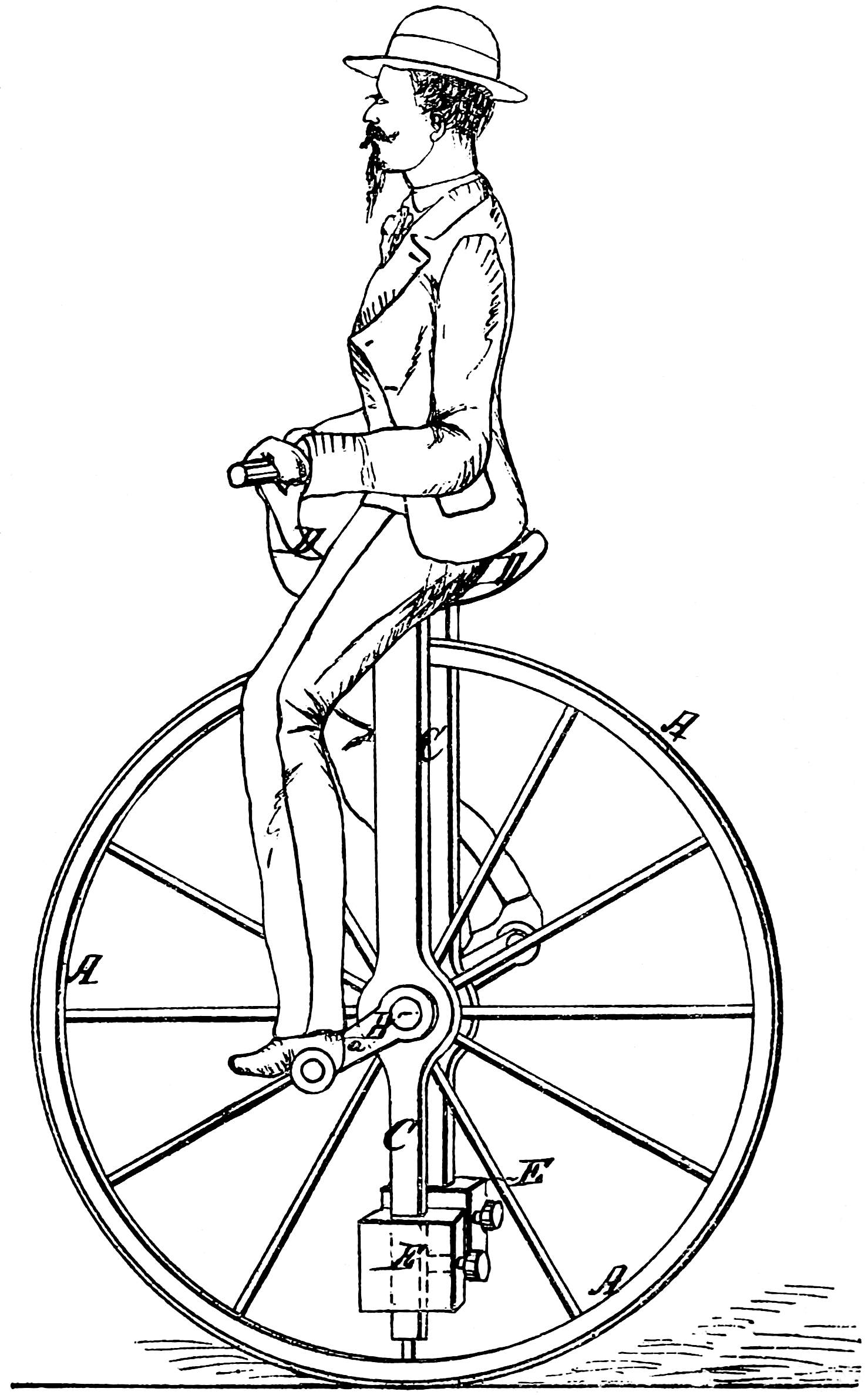 “I may operate my unicycle by either clock-work or steam, instead of foot-power.