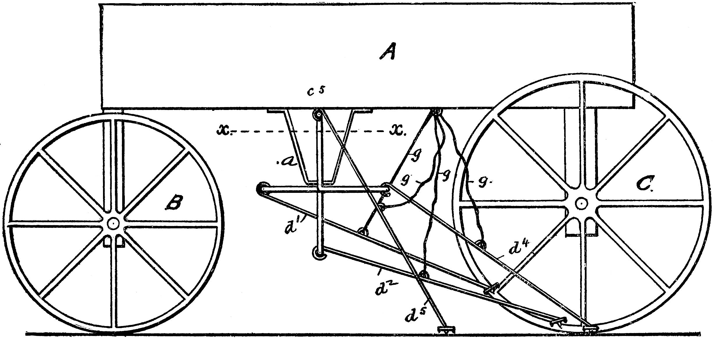 “If the wheels B be raised from the ground a short distance, considerable swaying of the machine will be possible without its quite tumbling over.