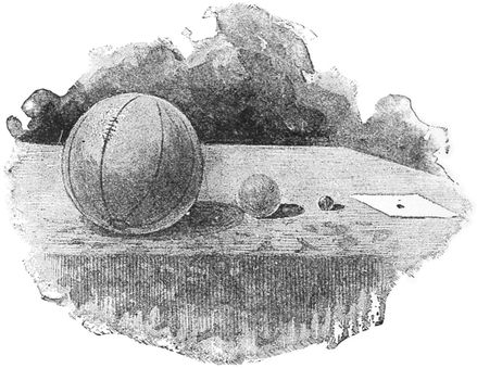Another application of the burning-glass is to obtain a record of the number of hours of sunshine in each6 day. You will understand the apparatus from Fig. 3; the lens is here replaced by a glass globe, which acts as a burning-glass. As the sun moves over the sky the bright spot of light also moves, and therefore burns its track on a sheet of paper marked with lines corresponding to the hours. When the sun is hidden by clouds the burning ceases, so by preserving each day the piece of paper, we have an unerring tell-tale, which shows us during what hours the sun was shining brightly, and the hours during which he was hidden. You see, the burning-glass is not merely a toy, it can be made useful in helping us to learn something about the weather.