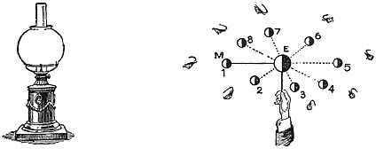 | The Phases of our Attendant the Moon—The Size of the Moon—How Eclipses are produced—Effect of the Moon’s Distance on its Appearance—A Talk about Telescopes—How the Telescope aids us in Viewing the Moon—Telescopic Views of the Lunar Scenery—On the Origin of the Lunar Craters—The Movements of the Moon—On the Possibility of Life in the Moon | 74 |