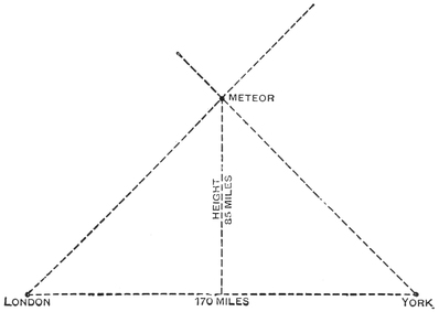 Hence you see that without going up to the ball or having a string from it, or in any other way making direct communication with it, we have been able to ascertain how far up in the air the ball is actually hung. This simple illustration explains the principle of the method by which astronomers are able to learn the distances of the different celestial bodies from the earth. You must think of the sun, the moon, and the stars as globes supported in some manner over our heads, and we seek to discover their distances from measurements of angles made at the ends of a base-line.