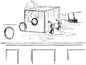 Some ingenious person has turned this principle to an odd use, by arranging a burning-glass over a cannon in such a way that just when noon arrived the spot of light should reach the touch-hole of the cannon and fire it off. Thus the sun itself is made to announce the middle of the day (Fig. 2).
