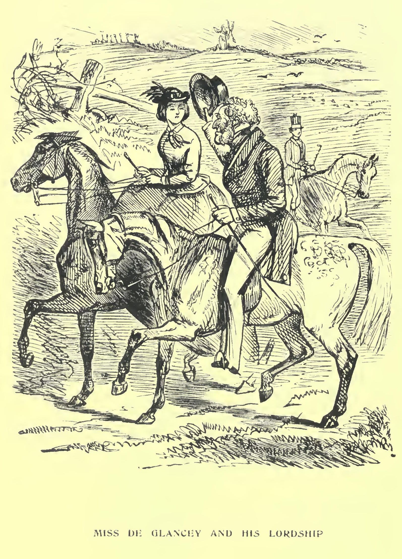 Miss de Glancey has revised Barley Hill Hall, for which place his Highness now appears in Burke’s “Landed Gentry,” very considerably; and though she has not been to Gillow, she has got the plate out of the drawing-room, and made things very smart. She keeps John in excellent order, and rides his grey horse admirably. Blurkins says “the grey mare is the better horse,” but that is no business of ours.