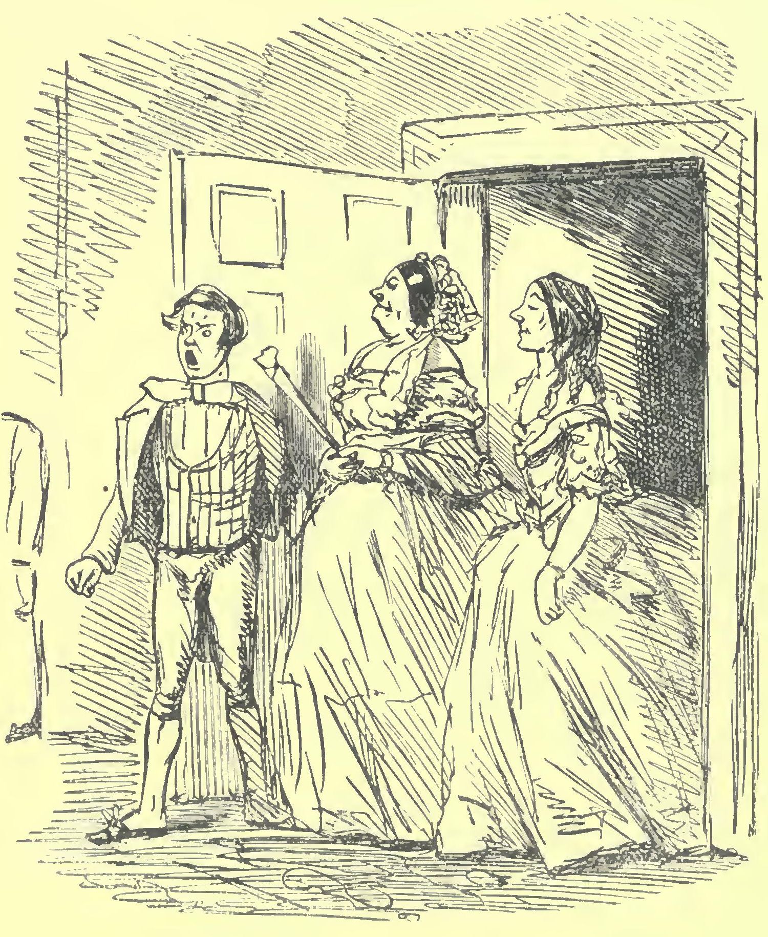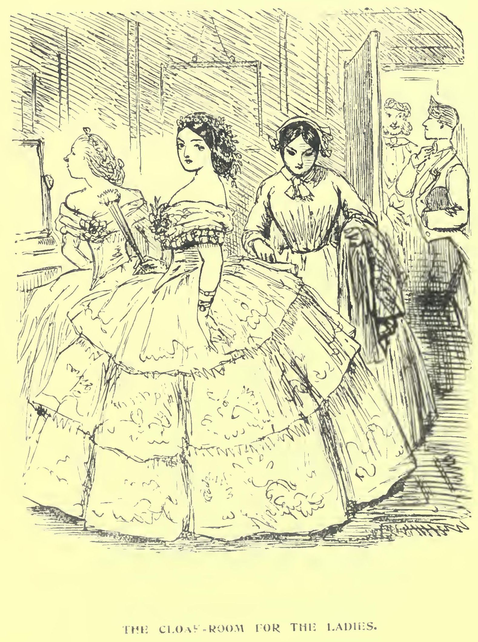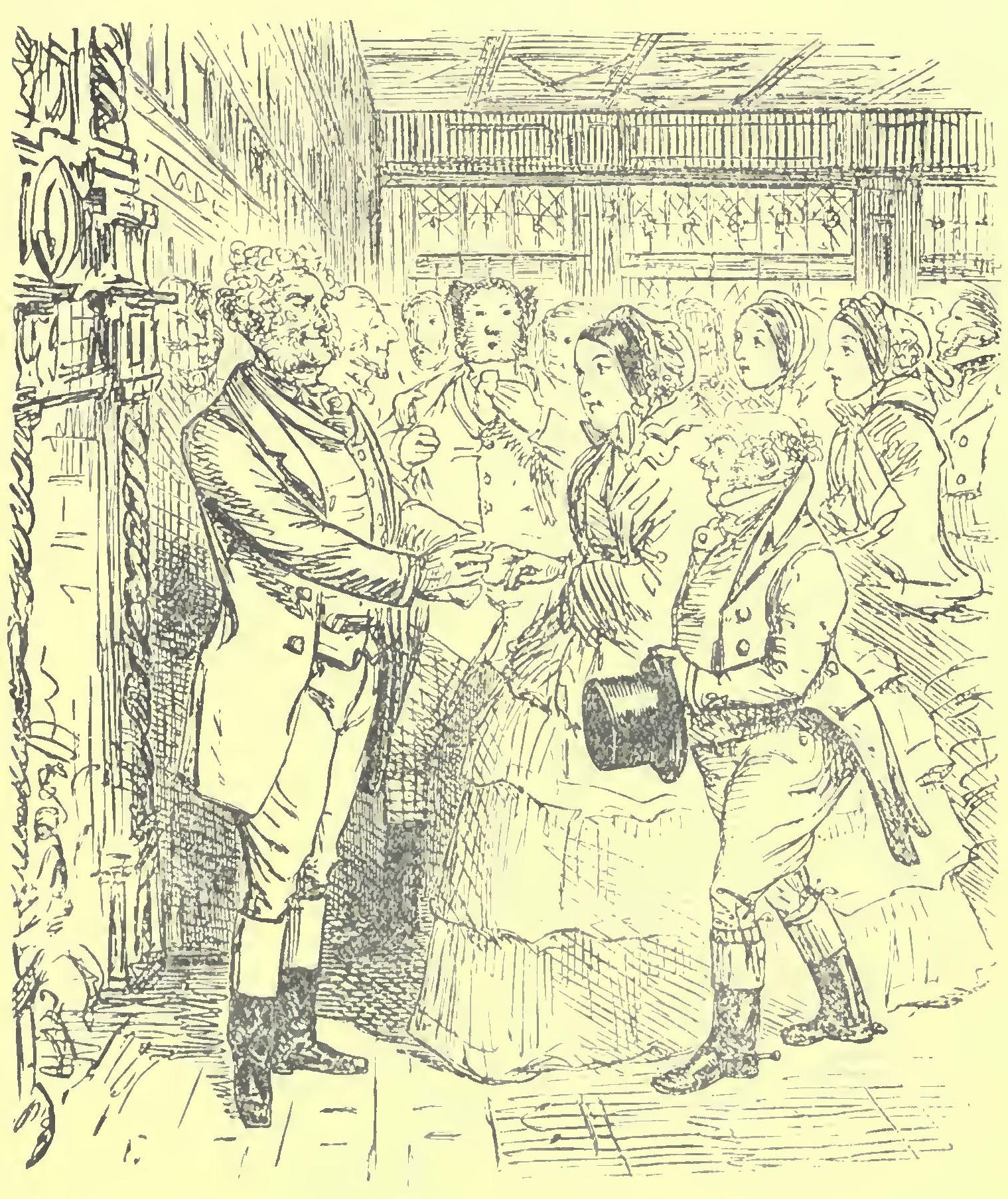 A continuously ascending stream of crinoline at length so inundated the room, that by ten o’clock Sir Moses thought it was time to open the ball; so deputing Tommy Heslop to do the further honours at the door, he sought Lady Fuzball, and claimed the favour of her hand for the first quadrille.