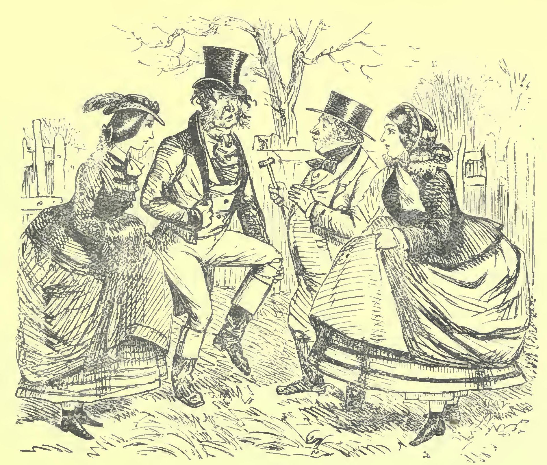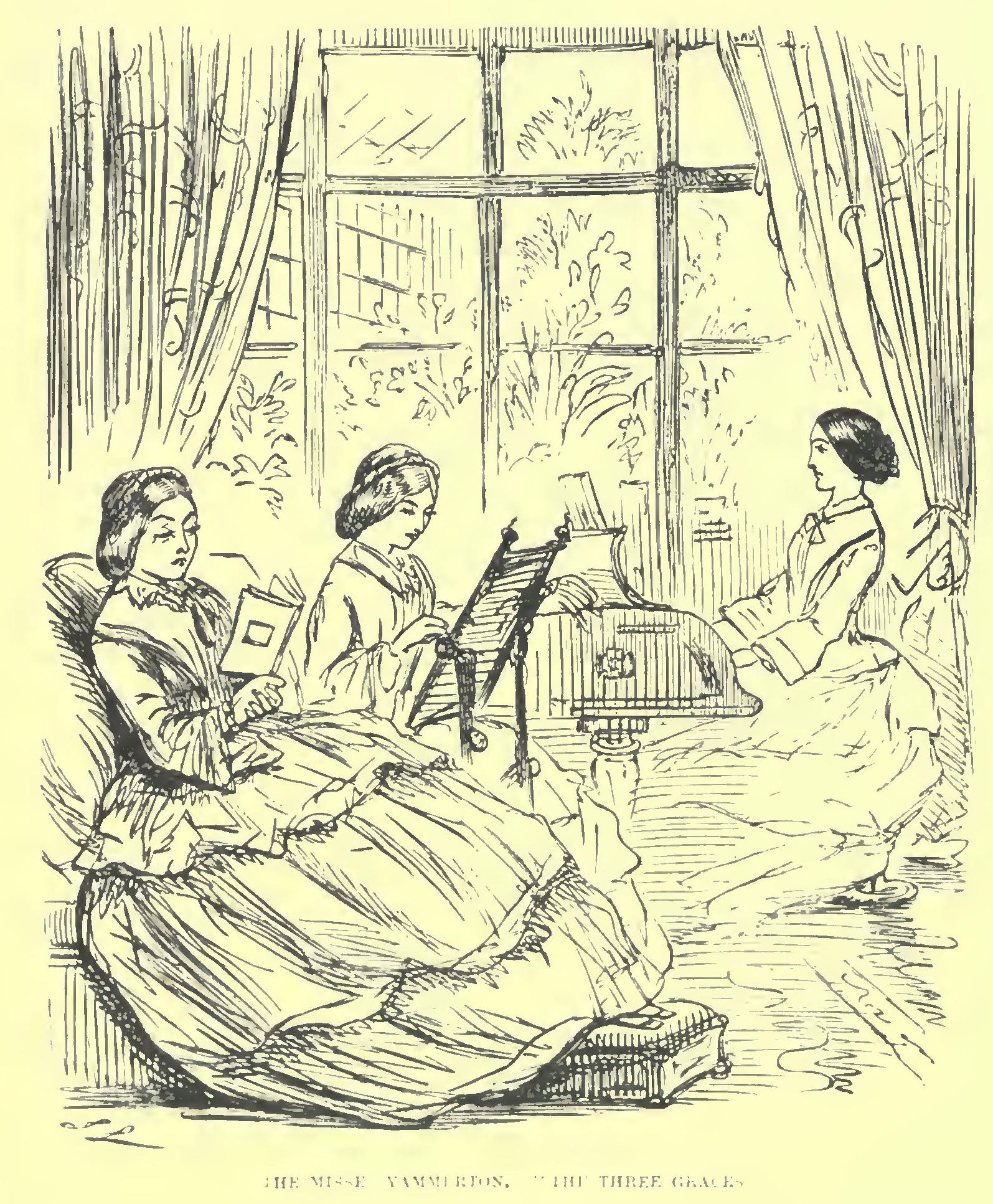 Of all our beauties, and thanks to Leech we have dealt in nothing else, Miss Harriet alone remains unsettled with her two strings to her bow—fine Billy and Rowley Abingdon; though which is to be the happy man remains to be seen.