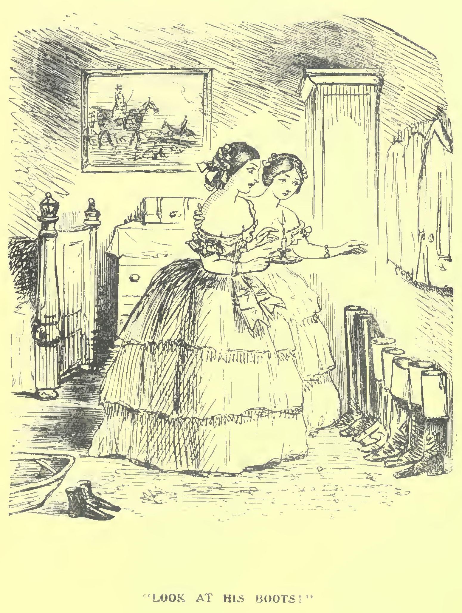 “Hush, woman! hush!” muttered Mr. Gallon, giving her a dig in the ribs with his elbow; adding, “ye mun de what it liar tells ye.”