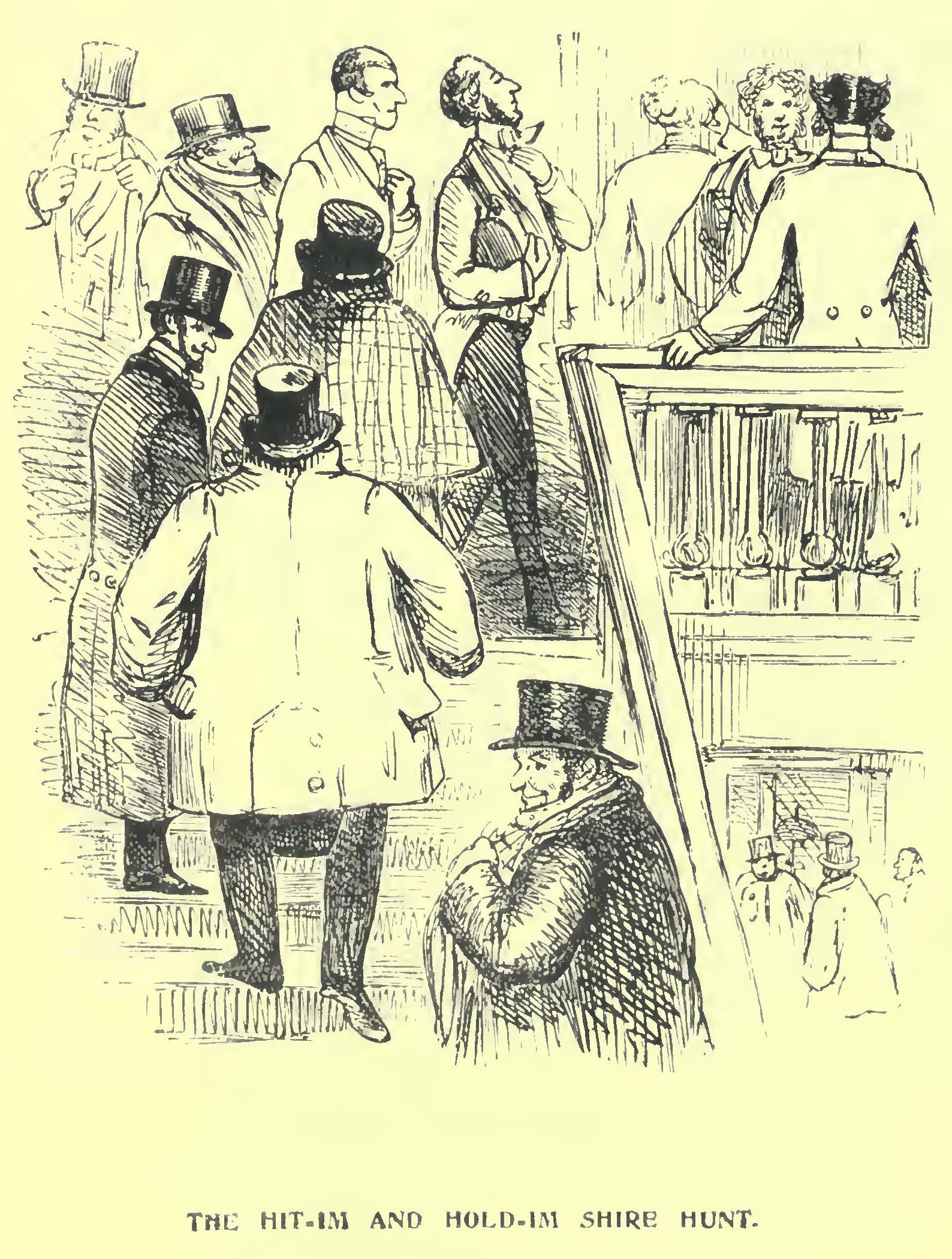 THE Hit-im and Hold-im shire hunt balls had long been celebrated for their matrimonial properties, as well for settling ripe flirtations, as for bringing to a close the billing and cooing of un-productive love, and opening fresh accounts with the popular firm of “Cupid and Co.” They were the greenest spot on the memory’s waste of many, on the minds of some whose recollections carried them back to the romping, vigorous Sir Roger de Coverley dances of Mr. Customer’s time,—of many who remembered the more stately glide of the elegant quadrille of Lord Martingal’s reign, down to the introduction of the once scandalising waltz and polka of our own. Many “Ask Mamma’s” had been elicited by these balls, and good luck was said to attend all their unions.