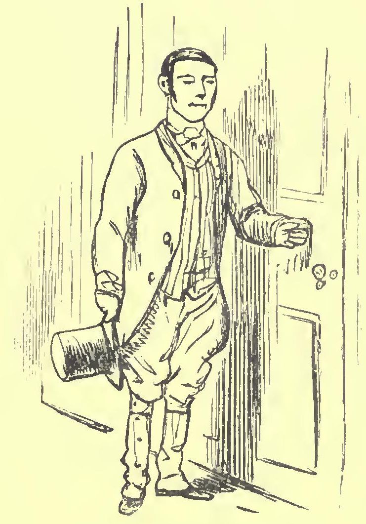 Scarcely had she got clear of the door ere the vehement bark of the terrier called her attention to the front of the house, where she saw our fat friend the Woolpack tit-tup-ing up on the identical horse Jack Rogers so unceremoniously appropriated on the Crooked Billet day. There was young Treadcroft with his green-liveried cockaded groom behind him, trying to look as unconcerned as possible, though in reality he was in as great a fright as it was well possible for a boy to be. Having dismounted and nearly pulled the bell out of its socket with nervousness, he gave his horse to the groom, with orders to wait, and then followed the footman into the dining-room, whither Mrs. Yammerton had desired him to be shown.