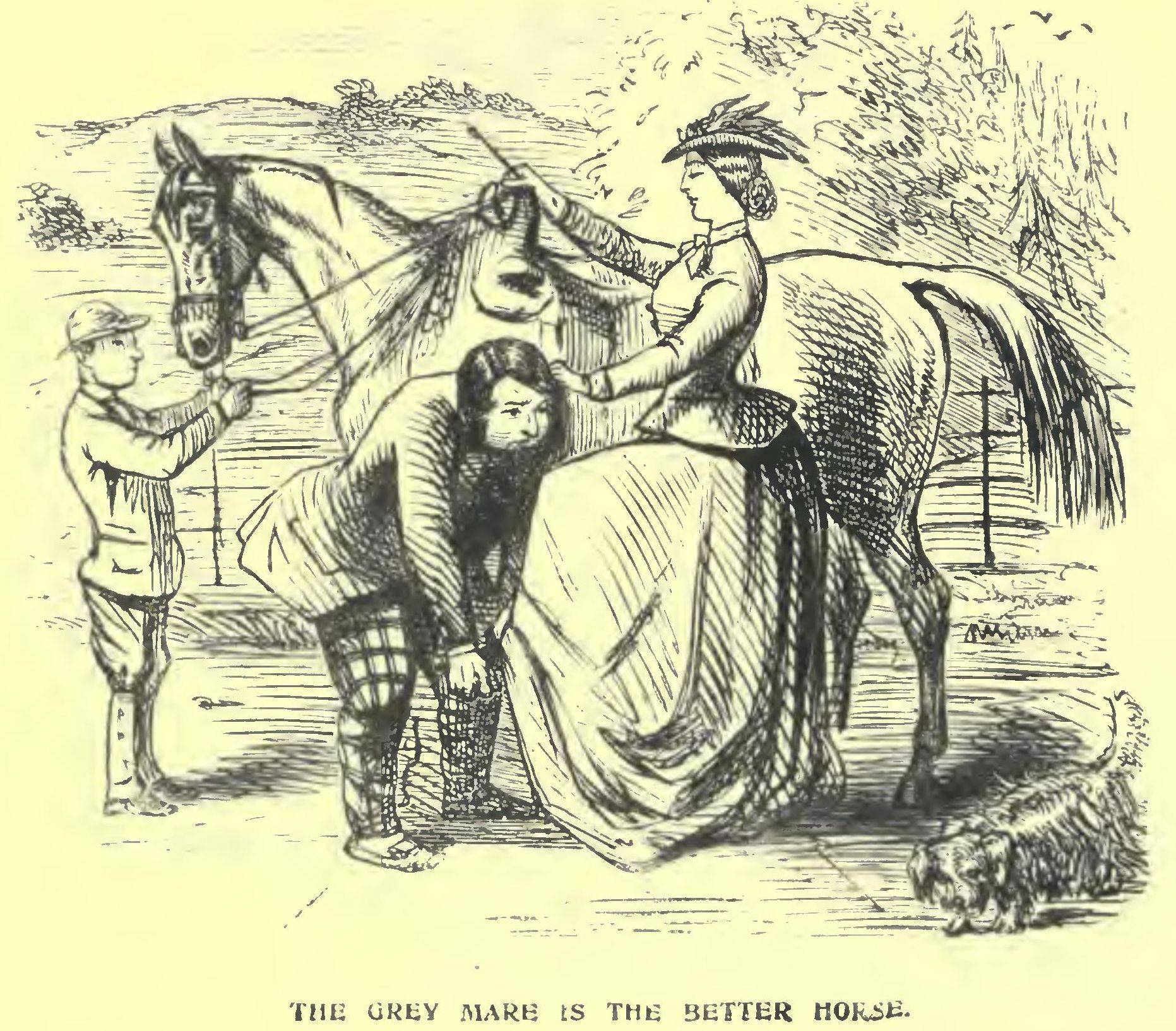 We confess we incline to think that the Countess will be too many for the Yammertons; but if she is, there is no great harm done; for Harriet is very young, and the Owl is a safe card in the country where men are more faithful than they are in the towns. Indeed, fine Billy is almost too young to know his own mind, and marrying now would only perhaps involve the old difficulty hereafter of father and son wanting top boots at the same time, supposing our friend to accomplish the difficult art of sitting at the Jumps.