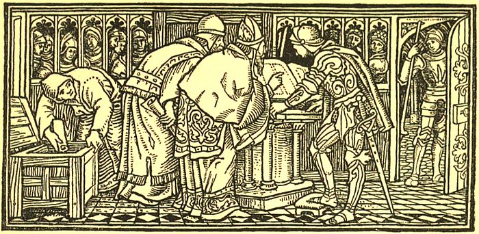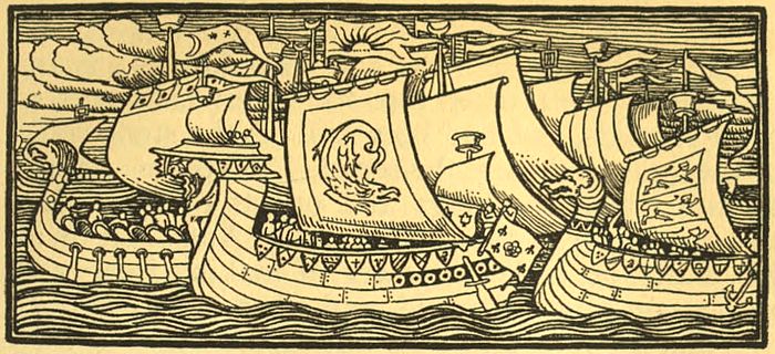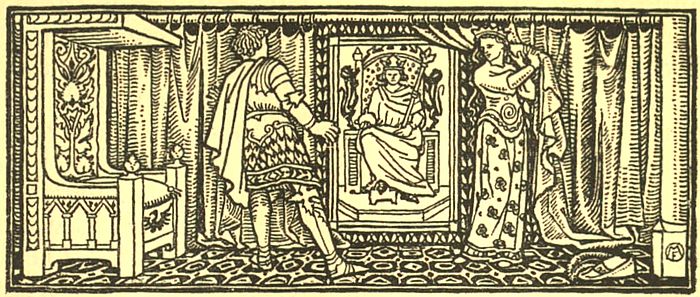Now when the lords of the land had heard his reasons abovesaid, and considered his great discretion, wit, and understanding, they marvelled greatly, and answered him thus: “We have heard and understand thy great reasons, and have received thy good counsels, and therefore we will and beseech thee that thou reign over us, and have the lordship upon us. During thy life may there be[38] none who shall deserve to be our king rather than thou.” And thus they chose him to be their king, and crowned him, and gave him their troth, and prayed the gods to bless and maintain him.