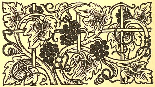 But the doors of the palace opened and shut, and there stood before them a negro, ten feet high, with great teeth showing over his lips, his ears pierced and a great pearl in each, and clothed in skins. And when he had saluted them he asked them why they had come to that land, and they said that they wished to see the trees that spoke, and to hear something from them. Then the negro bade them to take three of them, and to put off their shoes, and their weapons and ornaments, and to clothe themselves in fair white linen, and Alexander and two of his companions did so, and the negro brought them within the palace, leaving the rest of their companions outside. And as they went in they marked the fair garden, and in it were golden vines bearing on them grapes of rubies and carbuncles, and they saw how precious a place it was, so that Paradise alone excelled it.