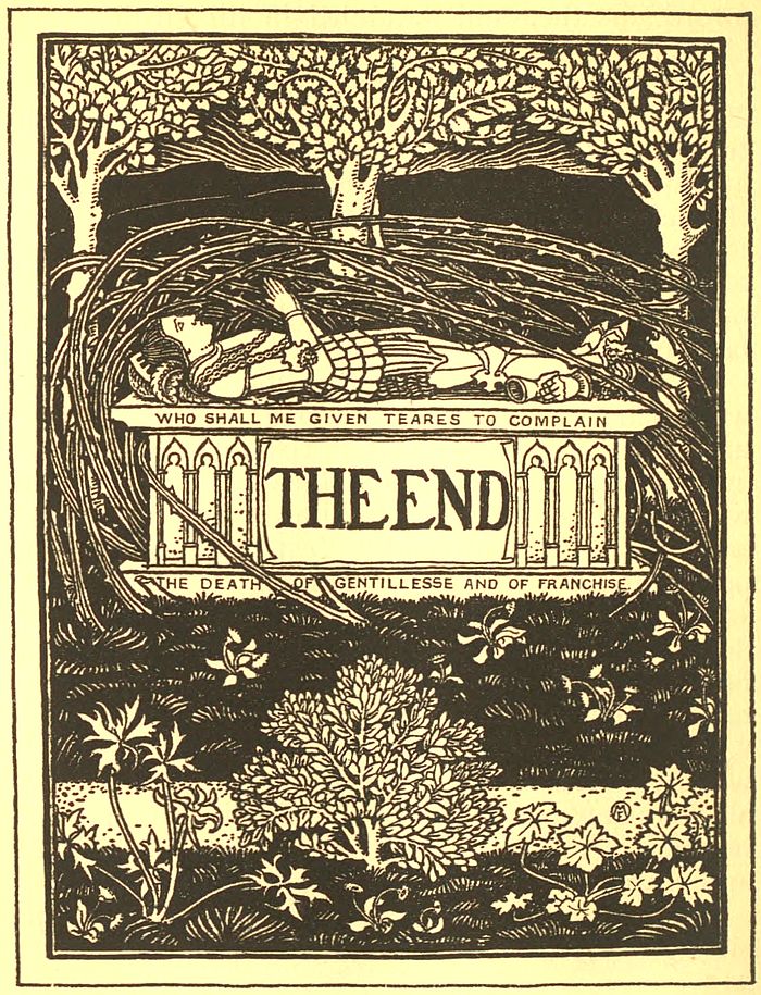 But the army of the Macedonians came round the dwelling of their chief, as it ever was their wont in time of danger, though they knew that they could not help him, nor he them, in this his day of passing away from them. Their hearts longed to see him once more, to look on the face that had led them smiling into danger and out of it again, and it may be, to touch the hand that had struck such blows in their aid, or had given such gifts to them as he had. So Alexander the king was brought on his bed into the great hall of his palace, and the Macedonians crowded round to see him, and one of them was over-bold and asked him “Whom dost thou leave to be lord of thine army?” and Alexander lifted up his head and said “Perdiccas, I leave my army and my Queen in thy charge, take care of them: as I have loved thee, love and keep them in my memory.” Then the Macedonians began to weep and lament and those who were near kissed the cold hand of their king, and they went out, and the sound of their sobs and lamentations was like the dying away of a thunder storm far off.