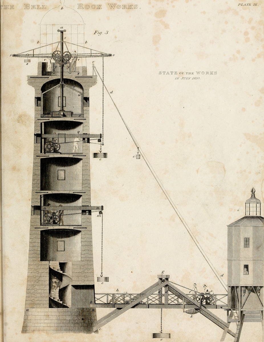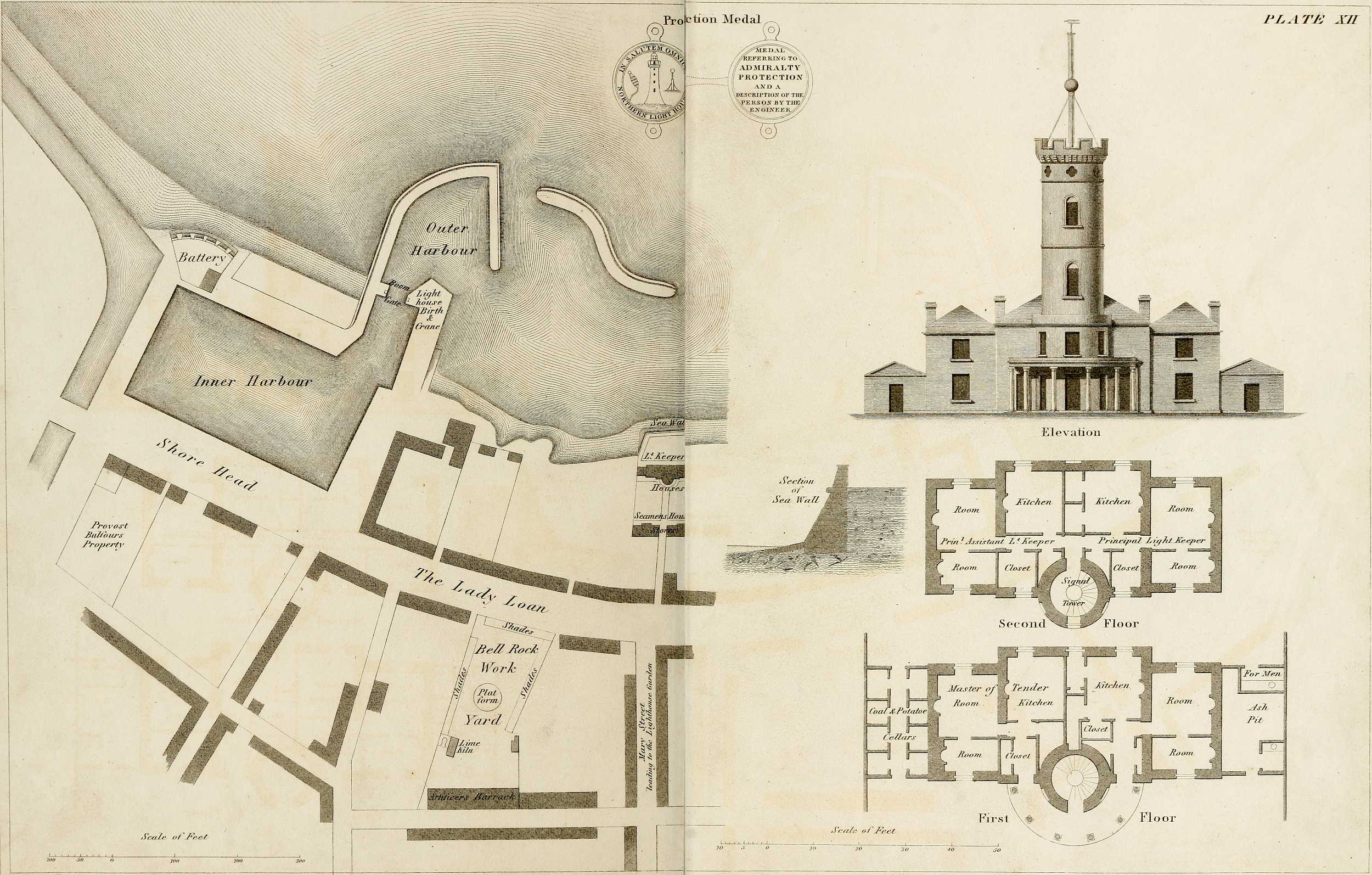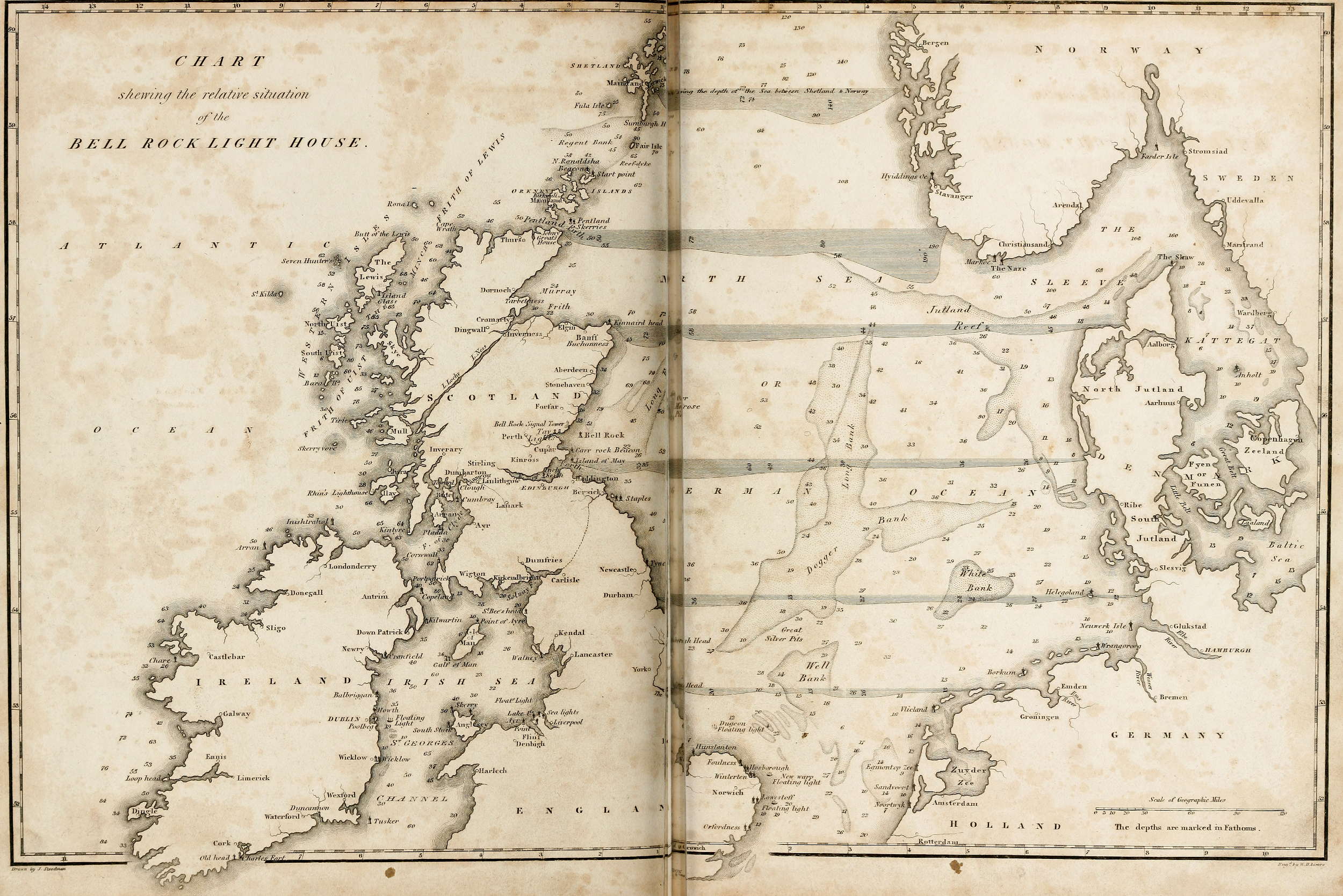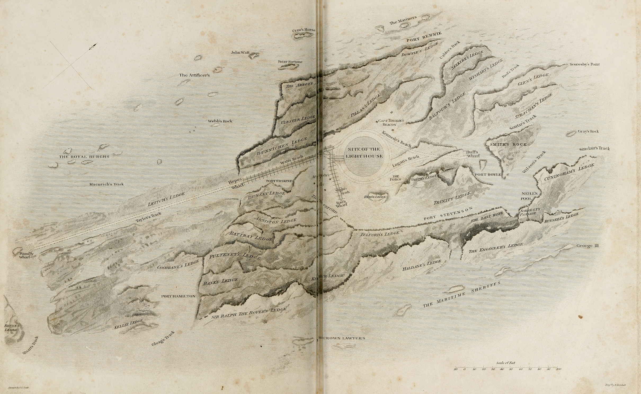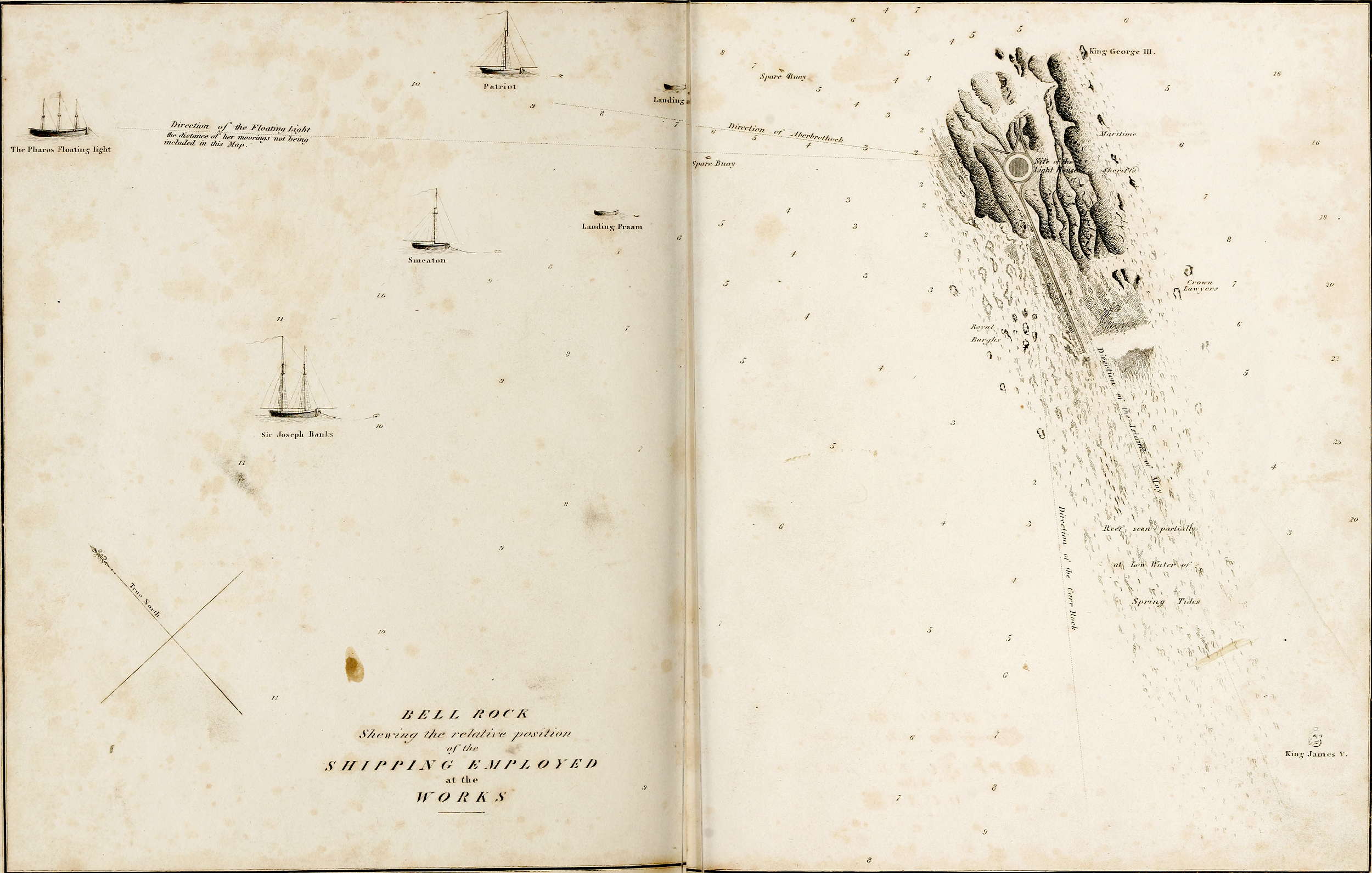 This edifice being of the utmost consequence to the safety of Your Majesty’s Ships of War upon the North Sea station, and of the commercial shipping of this part of the empire, he presumes to hope for Your Majesty’s favourable acceptance of his work. From the known partiality, also, of Your Majesty for naval excursions, which so recently led the Royal Squadron within a comparatively short distance of the Bell Rock Light-house, in the course of Your Majesty’s most gracious Visit to your ancient Kingdom of Scotland, he flatters himself that Your Majesty may feel an additional interest in the subject of this volume.
