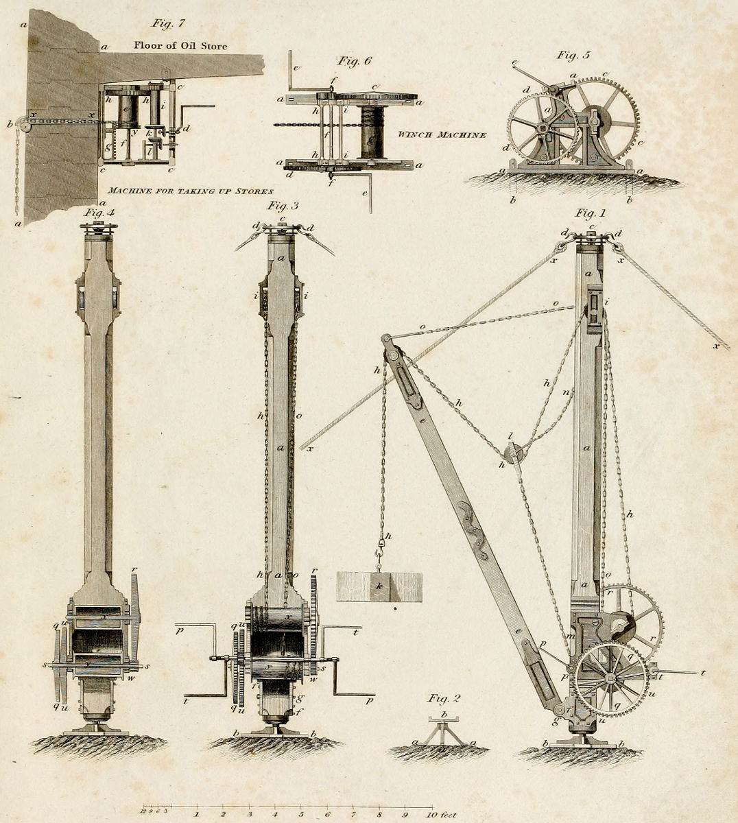 | Railways, Waggons, Sheer-crane, Moveable-beam-crane, Sling-cart, Carpenters’ Jack, Lewis-bat, Moulds, Coffer-dam, Pumps, Winch-machine. | 189–196 |
