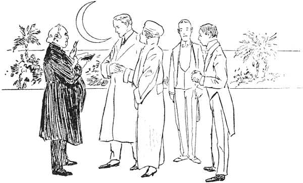 When we had placed sweetmeats and cigarettes convenient for her, we all, in turn, with circumstance and ceremony, bent over her left hand where it rested listlessly among the cushions, saluting the emerald on her third finger with our lips.
