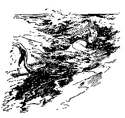 He did not stir. She swam in a circle and came up beside the rock. After a long, long silence, she lifted up both arms; he bent over. Then, very slowly, she drew him down into the water.