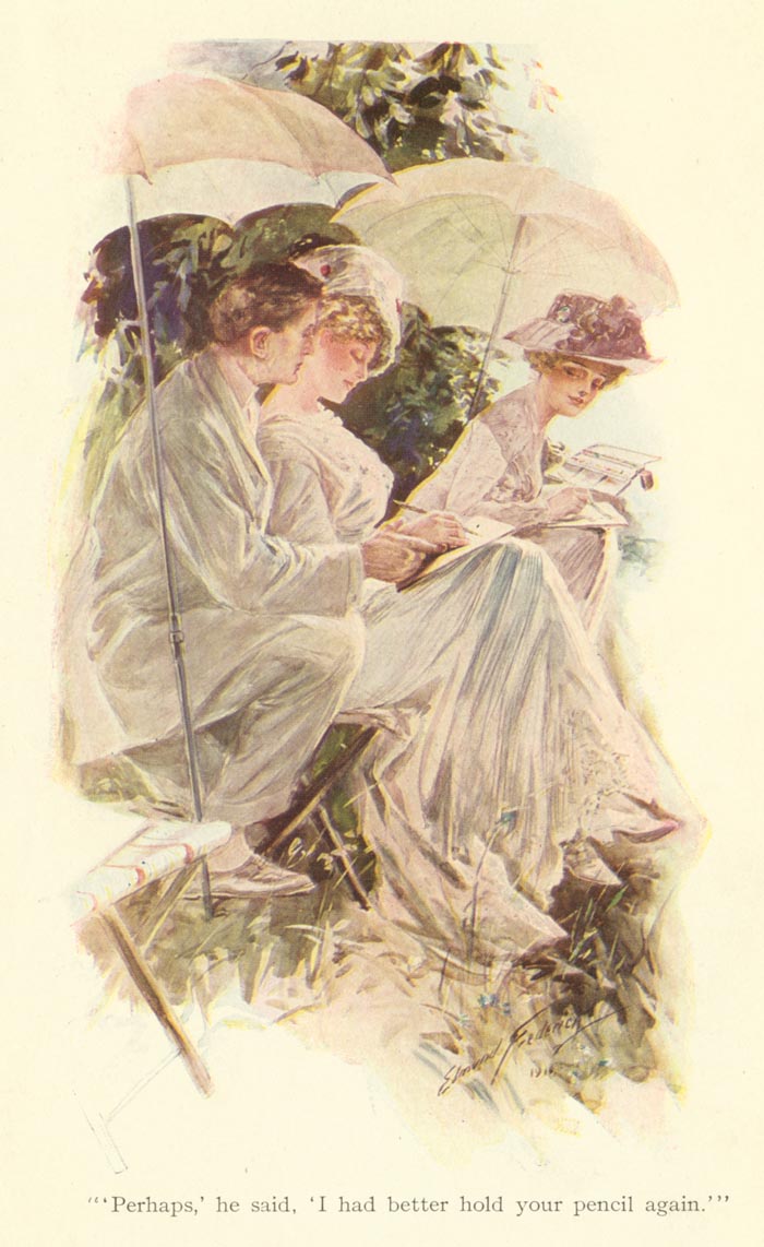 So he rented a suite of two rooms on Central Park West, furnished them with what remained from better days, bought the necessary paraphernalia of his profession, and immured himself for practice before entering upon his contemplated invasion of Newport, Lenox, and Bar Harbor. And one very lovely afternoon in May, when the Park from his windows looked like a green forest, and puff on puff of perfumed air fluttered the curtains at his opened windows, he picked up his gloves and stick, put on his hat, and went out to walk in the Park; and when he had walked sufficiently he sat down on a bench in a flowery, bushy nook on the edge of a bridle path.