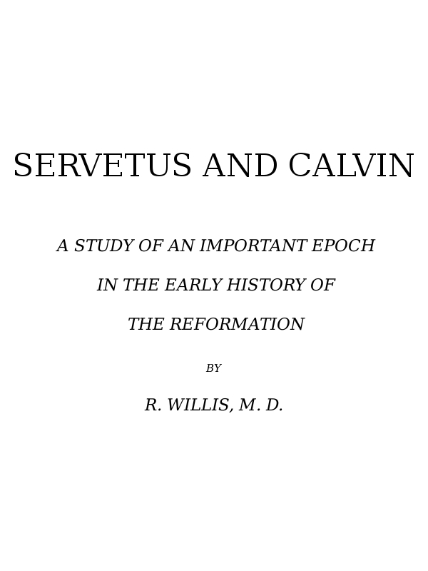 In appealing mainly to the original sources of information on the life of Servetus, I have still not failed to make myself master of what has been done in later days by others in this direction. The references that occur in the course of my book to the writings of La Roche, Allwörden, Mosheim, D’Artigny, Trechsel, Rilliet, and, last but not least, of Henry Tollin, make it unnecessary for me to do more in this place than to acknowledge my obligations to them.