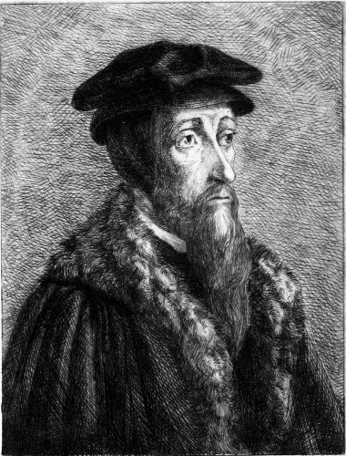 The etching of Calvin is after an engraving from one of the numerous more or less authentic portraits of the Reformer that are extant.