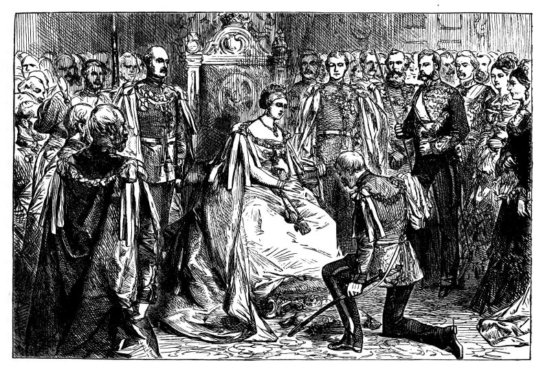 A Commercial Crisis—Suspension of the Bank Act—The Fall of Lucknow—Sir Hugh Rose in Central India—Last Days of the Rebellion—The Operations in China—The Queen’s Personal Direction of Affairs—Palmerston’s waning Popularity—Attacks on Lord Canning—The Orsini Plot—French Menaces to England—The Conspiracy Bill—Defeat of the Ministry—The Second Derby-Disraeli Government—Abandonment of the Conspiracy Bill—The Queen’s Opposition to the India Bill—The Oudh Proclamation and Ellenborough’s “Secret Despatch”—A Tropical Summer and an Exhausted Legislature—Confirmation of the Prince of Wales—The Queen at Birmingham and Leeds—The Dispute between France and England about the Principalities—The Queen’s Visit to Cherbourg—The Royal Visit to Prussia—The Meeting with the Princess Frederick William—A Royal “Middie”—The Indian Proclamation—The Queen at Balmoral—Donati’s Comet—The Controversy over the Indian Army—Abdication of the King of Prussia—The Queen’s Letter to the Prince of Wales—France and Portugal—Failing Health of the Prince Consort.