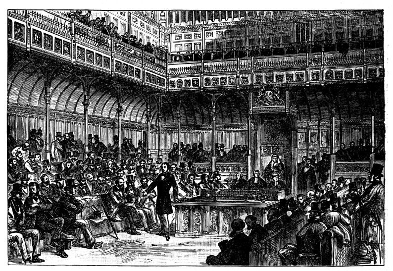 Where the Government broke down was in attempting to deal with the future administration of India; and it is a fact that had they but listened to the Queen’s advice, who strongly opposed their policy, they would have avoided a defeat which served to convince the people that the evil reputation of the Derby-Disraeli group for legislative incapacity was only too well founded. The Tories had opposed Palmerston’s India Bill, transferring the government of India to the Crown, so they were forced to bring in one of their own. Palmerston’s Indian Council consisted of nominated officials of high rank and ripe experience. The Tory Bill, which was devised by Lord Ellenborough, introduced into the Council a fantastic elective element. Four out of the Council of eighteen were to be chosen by holders of Indian Stock, and by Indian military and civil servants of ten years’ standing, and five were to be elected by the commercial constituencies of London, Glasgow, Liverpool, Manchester, and Belfast. The Queen warned the Cabinet that these provisions were fatal to their Bill. The selection of the constituencies was arbitrary, and other cities would in time agitate for representation on the Council. The turmoil of democratic elections was not likely to influence for good Imperial policy in a country about which the electors could at best know little. But the Cabinet held that the electoral clauses would secure the Radical support necessary to carry the Bill, and the Queen, reluctant to bring about another Ministerial crisis, left the matter in the hands of her Ministers. But when Mr. Disraeli, on the 26th of March, introduced the Bill, to his surprise, the Radicals{16} objected as strongly as the Queen to the electoral clauses. Mr. Roebuck complained that they gave a sham colour of democracy to what was really a despotic Government. Mr. Bright said they “savoured of what was generally called claptrap.” Anxious, however, to keep the Tories in power, lest Lord Palmerston and his followers might return to office, the Radicals refused to embarrass Mr. Disraeli[24] on this point, and urged the Government to reconsider it during the Easter recess. Most assiduously did Lady Palmerston endeavour to induce Lord John Russell to coalesce with Lord Palmerston during the recess for the purpose of defeating the Ministry on the India Bill; but her intrigues were in vain. On the contrary, Lord John determined to bring in a series of Resolutions on which the Ministry might base a Bill, and when Parliament re-assembled on the 12th of April he confidentially communicated them through Mr. Edward Horsman to Mr. Disraeli, who had himself resolved to adopt the same course. Mr. Disraeli was only too willing to be thus extricated from a difficulty by one of the leaders of the Opposition. But the House of Commons considered that as the India Bill was now removed from the arena of party strife, it would be wisest to let the Government prepare the Resolutions. This was done, and the debate on them began on the 30th of April, and went on favourably.