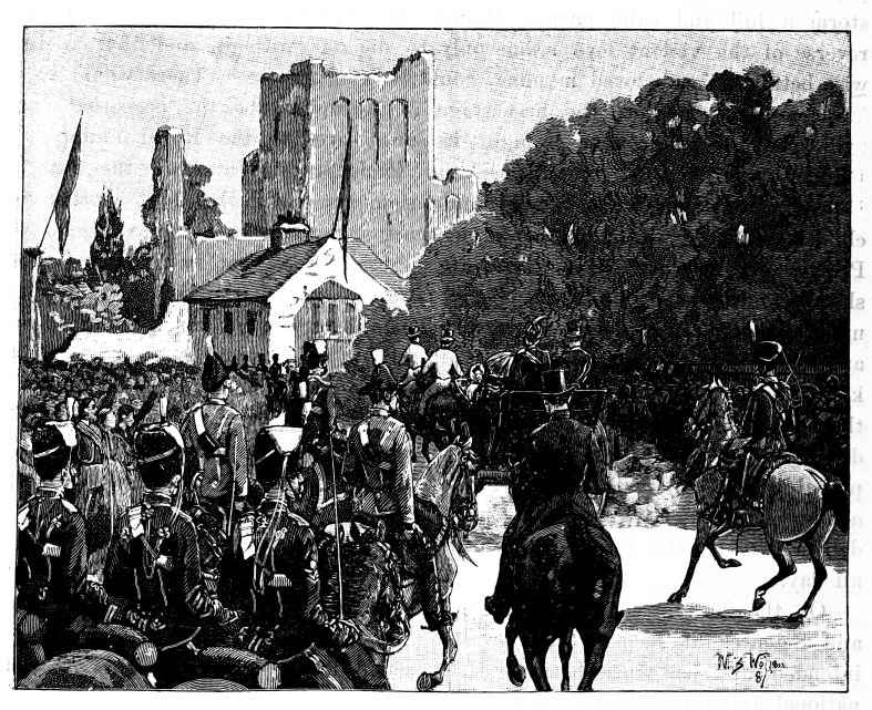 On the 14th, her Majesty paid her promised visit to Birmingham, and to Lord Leigh at Stoneleigh Abbey. It was smiling summer weather when she drove from Coventry through Shakespeare’s country to her host’s house, where{20}