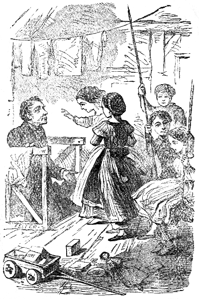 When they reached the garret they were soon at their play. The old toys were taken from the table, and, with the new ones, made enough to keep them busy all the afternoon.