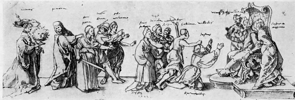[40] See Plate, where I have also added Dürer’s version of the subject. This is of course a new design and not a copy of Mantegna’s drawing, though I suspect it is based on a vague memory of it. In any case it shows admirably the distinguishing points of Dürer’s methods of conception, his love of complexity, and his accumulation of decorative detail.