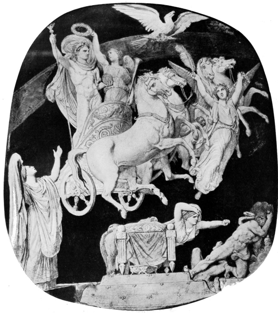 In the eighteenth century we get a curious phenomenon. Art goes to court, identifies itself closely with a small aristocratic clique, becomes the exponent of their manners and their tastes. It becomes a luxury. It is no longer in the main stream of spiritual and intellectual effort, and this seclusion of art may account for the fact that the next great change in life—the French Revolution and all its accompanying intellectual ferment—finds no serious correspondence in art. We get a change, it is true; the French Republicans believed they were the counterpart of the Romans, and so David had to invent for them that peculiarly distressing type of the ancient Roman—always in heroic attitudes, always immaculate, spotless and with a highly polished ‘Mme. Tussaud’ surface. By-the-by, I was almost forgetting that we do owe Mme. Tussaud to the French Revolution. But the real movement of art lay in quite other directions to David—lay in the gradual unfolding of the Romanticist conception of the world{6}—a world of violent emotional effects, of picturesque accidents, of wild nature, and this was a long prepared reaction from the complacent sophistication of eighteenth-century life. It is possible that one may associate this with the general state of mind that produced the Revolution, since both were a revolt against the established order of the eighteenth century; but curiously enough it found its chief ally in the reaction which followed the Revolution, in the neo-Christianism of Chateaubriand and the new sentimental respect for the age of faith—which, incidentally, appeared so much more picturesque than the age of reason.