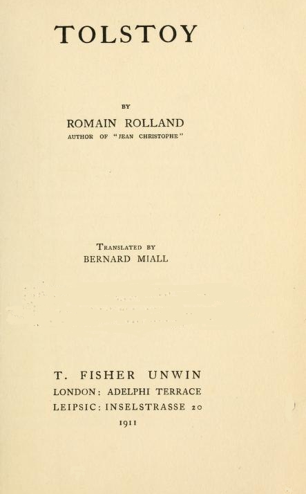 To those of my own generation, the light that has but lately failed was the purest that illumined their youth. In the gloomy twilight of the later nineteenth century it shone as a star of consolation, whose radiance attracted and appeased our awakening spirits. As one of the many—for there are many in France—to whom Tolstoy was very much more than an admired artist: for whom he was a friend, the best of friends, the one true friend in the whole of European art—I wish to lay before this sacred memory my tribute of gratitude and of love.