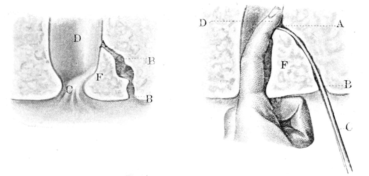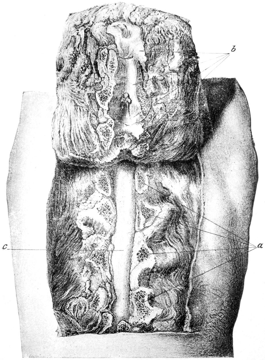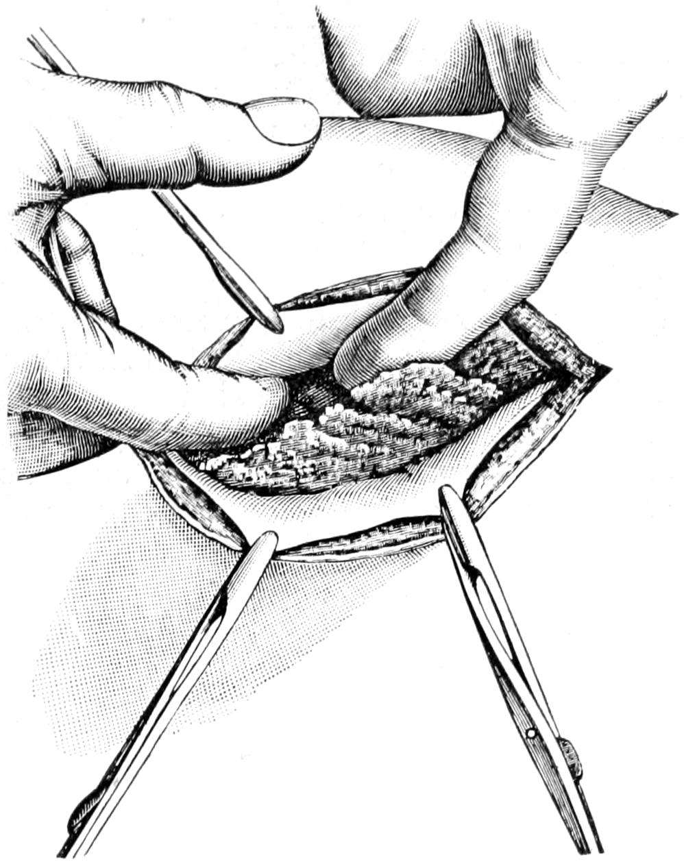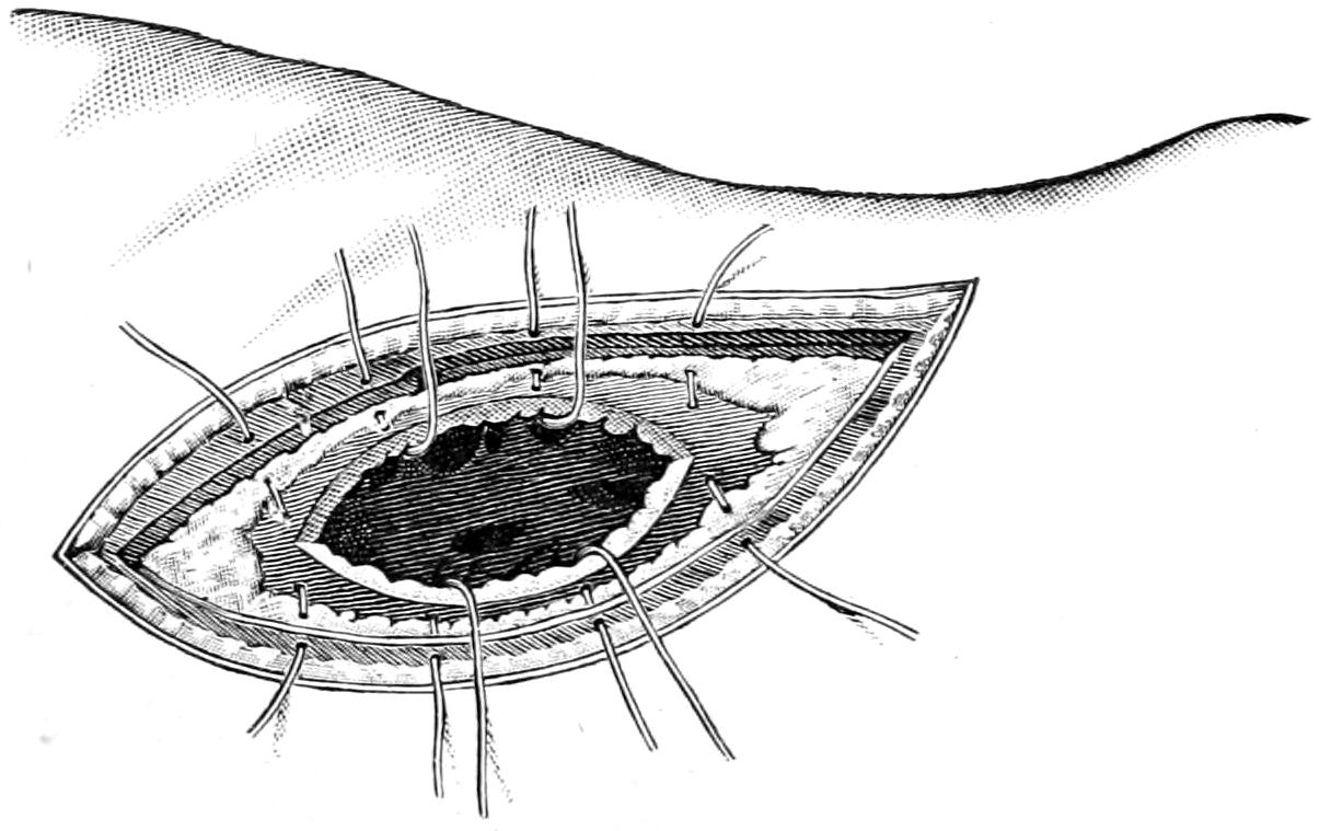 Page 411, ... two lateral incisions, with through drainage ...: possibly an error for ... thorough drainage.