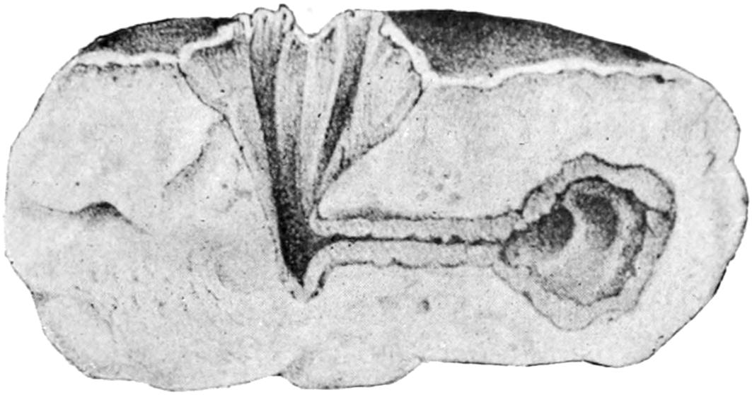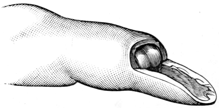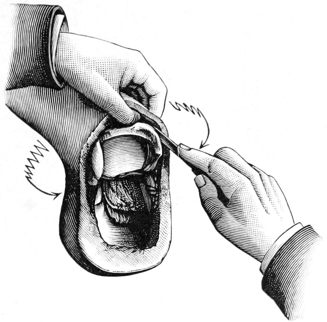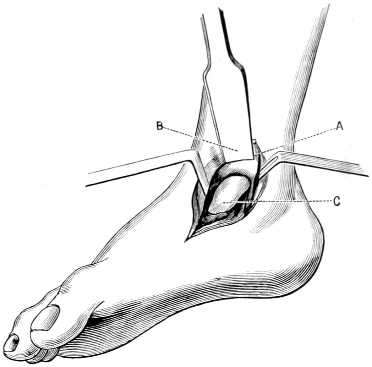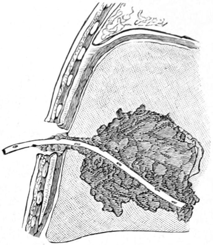 Page 411, ... two lateral incisions, with through drainage ...: possibly an error for ... thorough drainage.