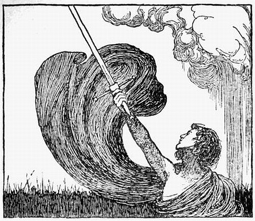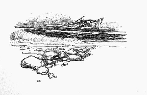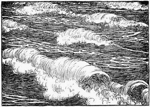 Our loins are battered ’neath us by the swinging, smoking seas.
