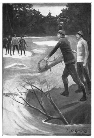 Standing now upon the shore, opposite the drifting cake, John Ellison handed one end of the rope to George Warren. Taking the other end, he separated the line into two coils, whirled one about his head and threw it far out. It fell short, splashing into the water. He tried again, and failed.